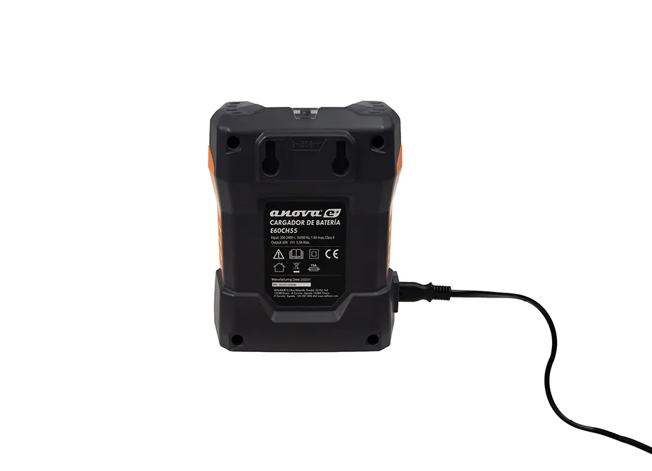 Le chargeur ANOVA E60CH55 60V est conçu pour recharger efficacement les batteries 60V ANOVA utilisées sur vos outils d’entretien de jardin et d’espaces verts. Avec une intensité de charge de 5,5 A, il réduit significativement le temps d’attente entre deux sessions de travail.