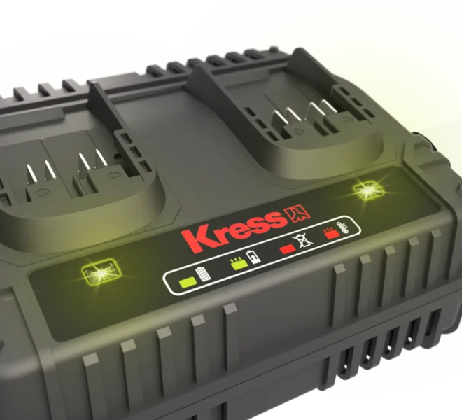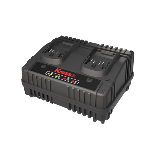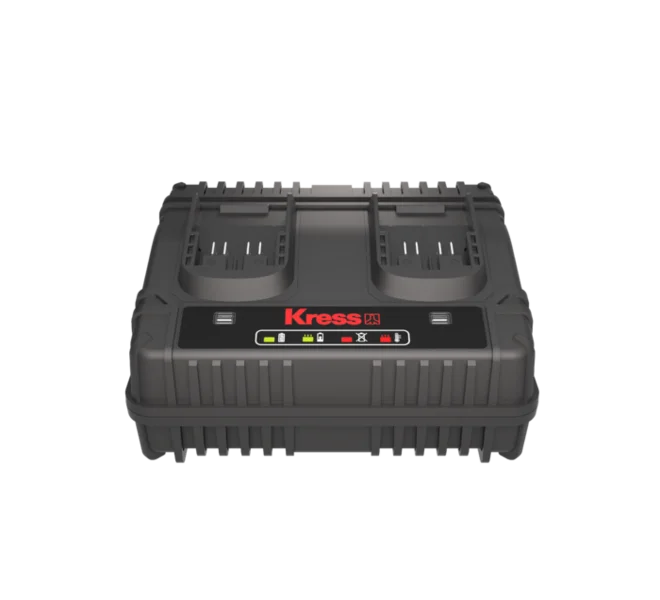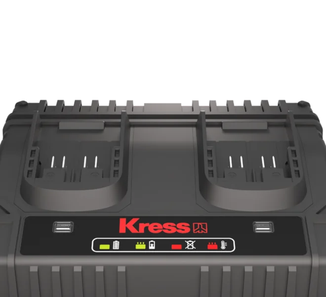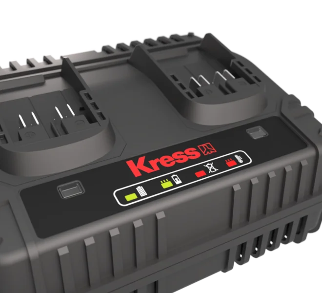 Le chargeur double KRESS – KAC15 est un appareil performant conçu pour faciliter le chargement de vos batteries KrossPack 20V – Lithium. Il possède deux ports de charge et permet de recharger rapidement et simultanément deux batteries. Cela vous permet une réduction des temps d’arrêt entre les charges.