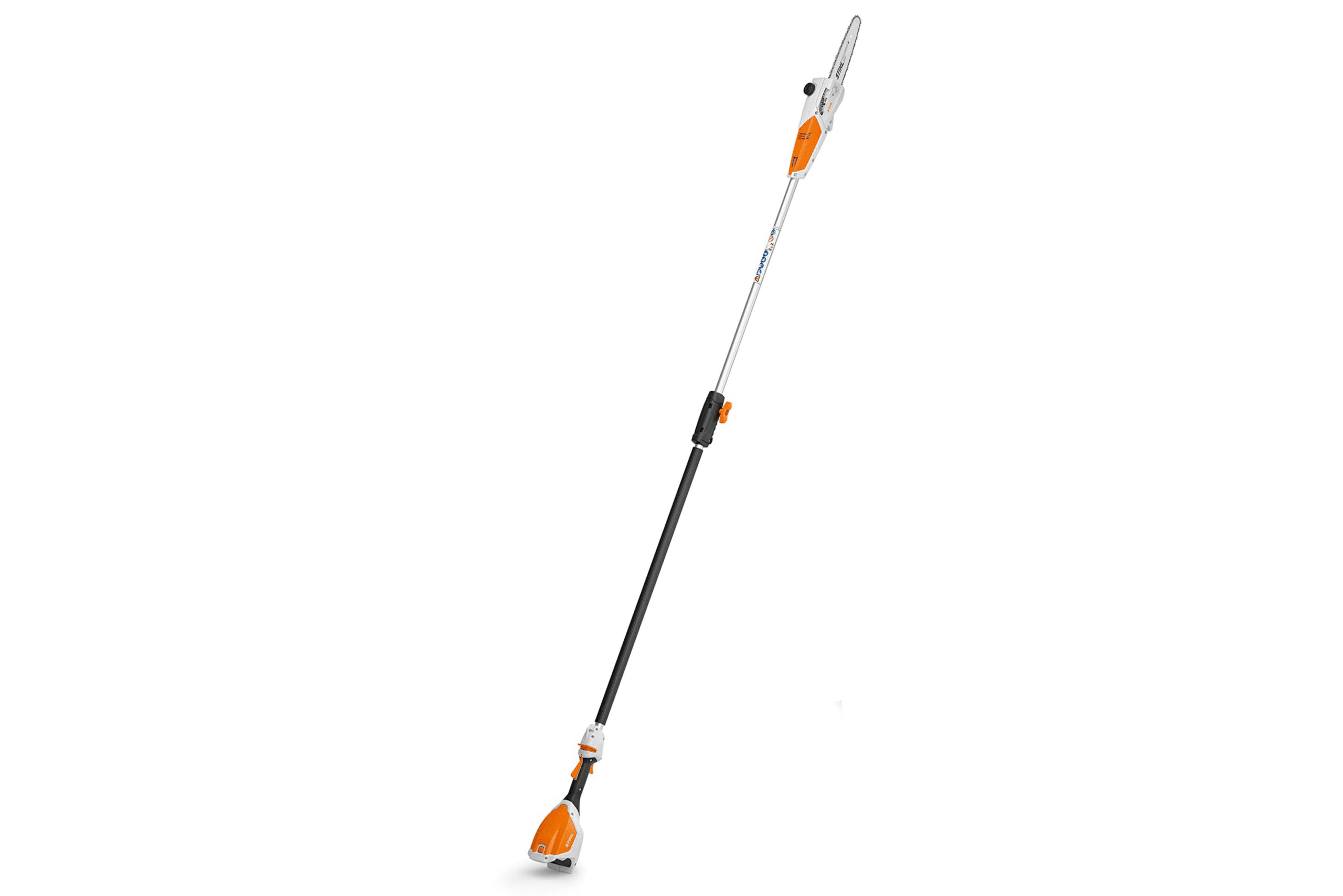L’élagueuse sur perche à batterie STIHL HTA 50, est idéale pour l’entretien des arbres et l’ébranchage depuis le sol.