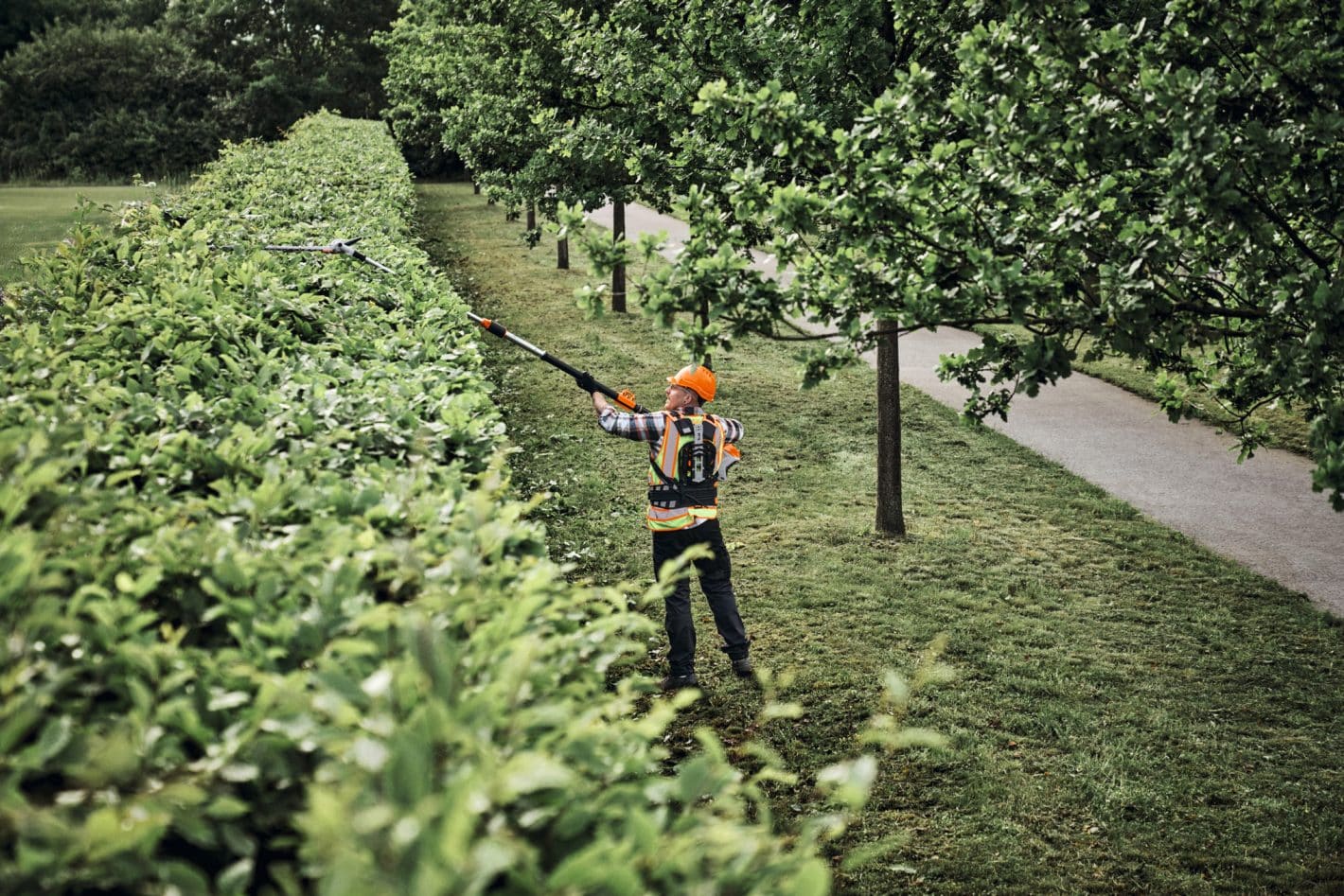 Le taille-haies sur perche STIHL HLA 150 est conçu pour la taille sûre et confortable des haies très hautes.