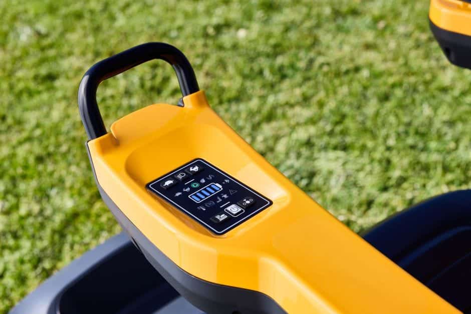 La commande se fait par joystick. Il s’agit de la première tondeuse à gazon dotée d’un joystick de commande. Il rend ainsi la conduite et la manœuvre de la tondeuse, plus intuitive et facile à gérer.
