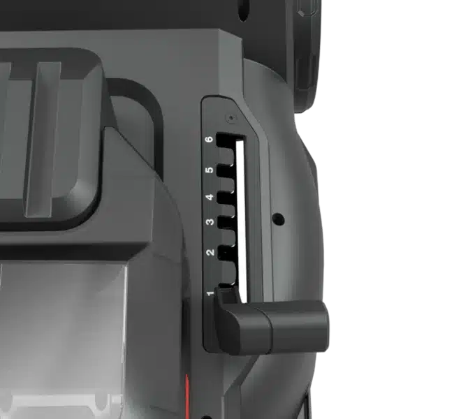 La conception à levier unique de la tondeuse KG745.9 permet de régler d’un simple mouvement, la hauteur de coupe. Vous disposez grâce à cela, d’une grande flexibilité pour vos différentes utilisations. Vous pourrez régler votre hauteur de coupe grâce à 6 paliers différents. Ces derniers vont de 20 à 70 mm.