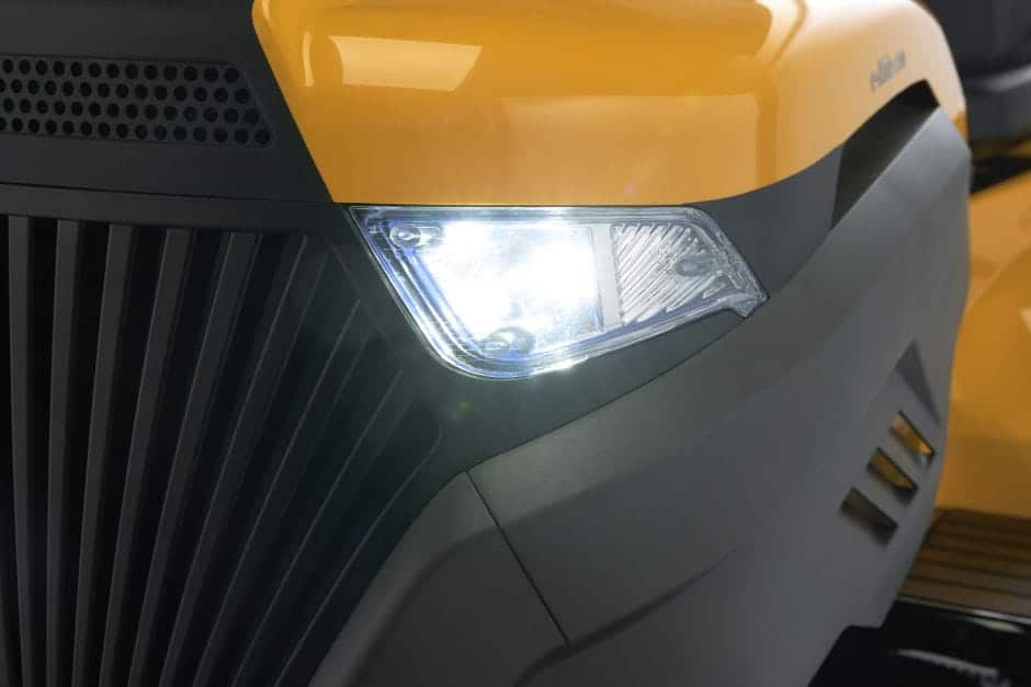 Le TORNADO 598E possède en effet, un mode écologique. Il réduit la vitesse de rotation des lames, lorsque les conditions de tonte sont moins exigeantes, pour améliorer l’autonomie. Les phares à DEL de la tondeuse autoportée assurent une conduite confortable, même en cas de faible luminosité.