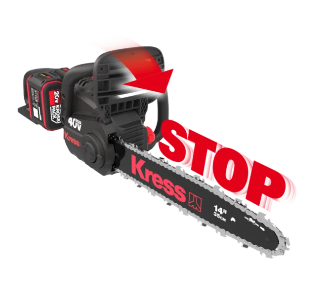 Le système de tension de chaîne (sans outil) vous garantit une tension optimale, rapide et facile. Cela vous assurera des coupes précises et sécurisées. La KG 346.9 possède un système de freinage double, offrant une sécurité supplémentaire lors de son utilisation. Le frein de chaîne Inertia permettra de son côté, un arrêt rapide en cas d’urgence, tandis que le frein électrique arrêtera instantanément la chaîne lorsque vous relâcherez la gâchette, minimisant ainsi les risques d’accidents.